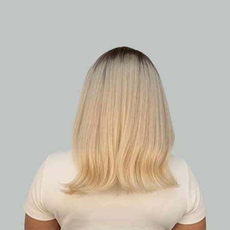 Material : 100% human hair, 12 inch, density 180% , straight , ash blond dark root Lace type : 13X4 lace wig Cap contraction : adjustable straps