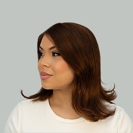 Material : 100% human hair, 12 Inch , density 180%, straight , light brown Lace type : 13X4 HD lace wig Cap contraction : adjustable straps